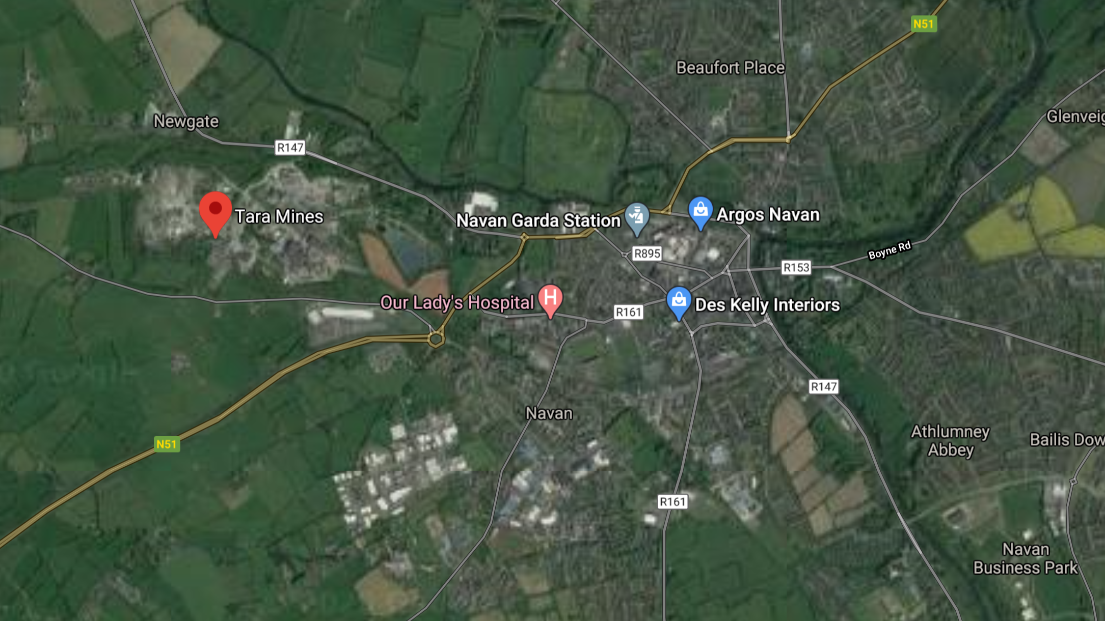 This Google Map shows its location to the West of Navan.